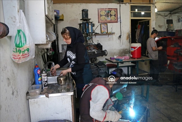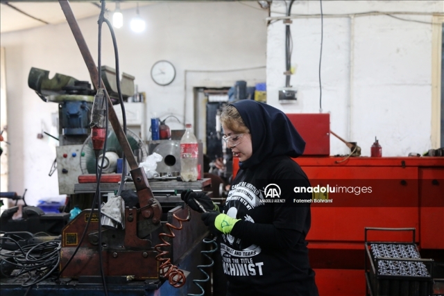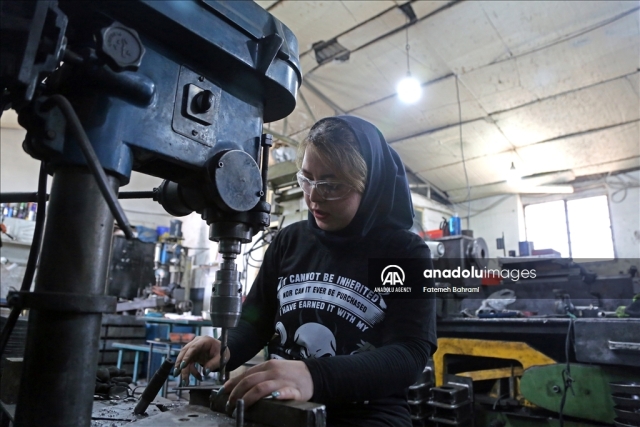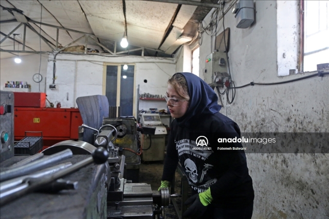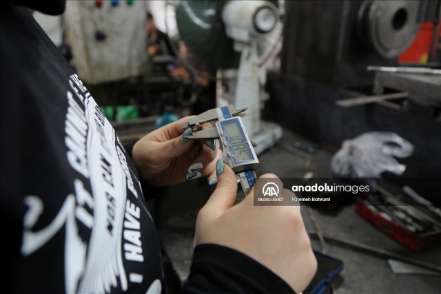 پریا شفازاده از فعالان رسانههای اجتماعی در عرصه توسعه صنعتی ایران، پابهپای مردان در کارگاه تراشکاری و جوشکاری مشغول به کار است.